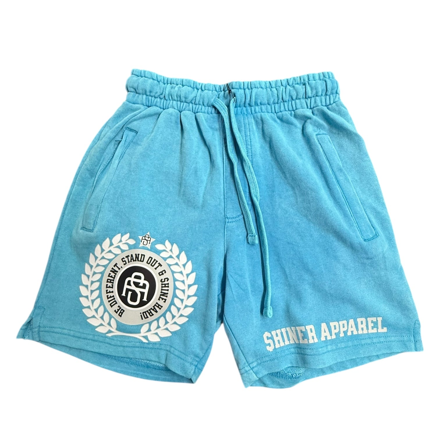 Light Blue Acid Wash Crest Shorts